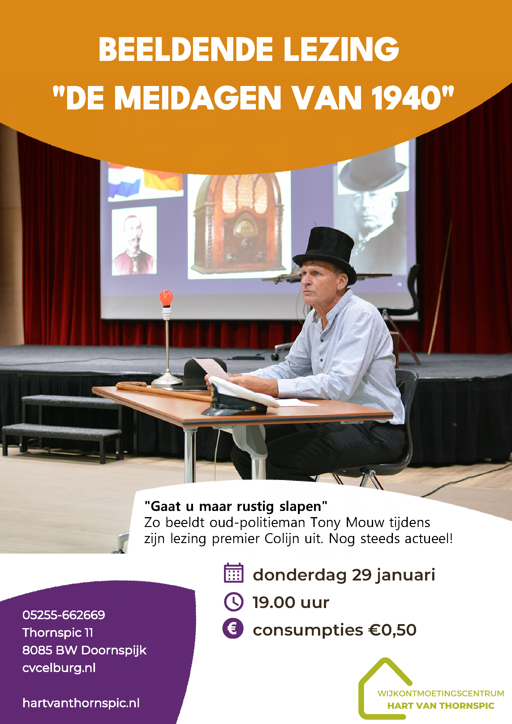 | do | 29-01-2026 | 19:00 | Theater-lezing “Meidagen 1940, inval van de Duitsers” (oud-politieman Tony Mouw) |
